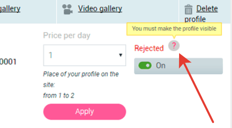 Your profile has been successfully verified and is now visible on the site. You can enable or disable it at any time. If you make changes to the profile or photos, the status will change to "Under reviewing" and the profile will be checked again.