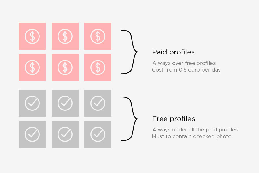 The higher the bid, the higher the profile appears in the catalog. If several profiles have the same price, they are displayed randomly at the same level.